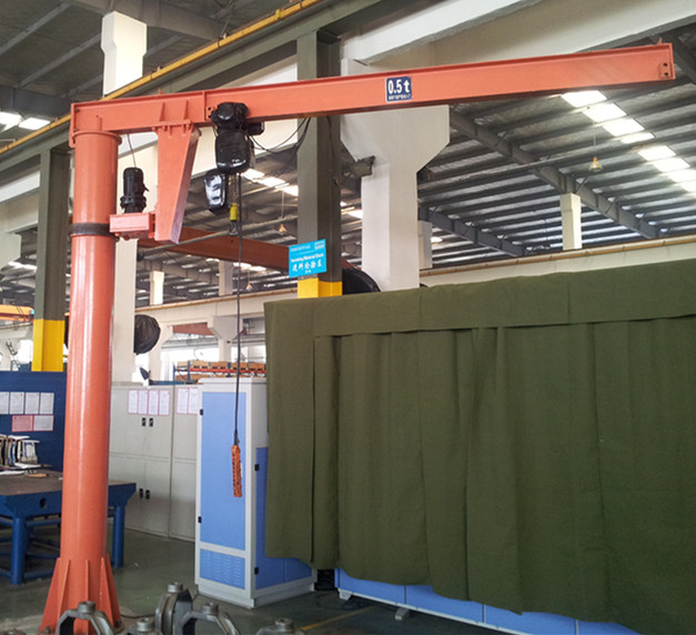 BZD型电动全回转悬臂起重机是与CD1型MD1型电动葫芦配套使用的一种起重机,本起重机由立柱,回转臂回转驱动装置及电动葫芦组成,立柱下端通过地脚螺栓固定在混凝土基础上,由摆线针轮减速装置来驱动悬臂回转,电动葫芦在悬臂工字钢上作左右直线运行,并起吊重物。 本起重机结构简单,占地空间少,作业范围大,操作方便,转动灵活,适用于码头,仓库及车间等固定场所,起重机设有安全保护装置和极限保护装置,安全可行,是理想的起重机械。