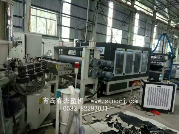 第四步、PVC片材定型冷却机用于片材的定型、冷却。定型冷却机上装有供定型和冷却的水循环系统,定型冷却机上装有前后移动装置和左右、高低调节手动装置。