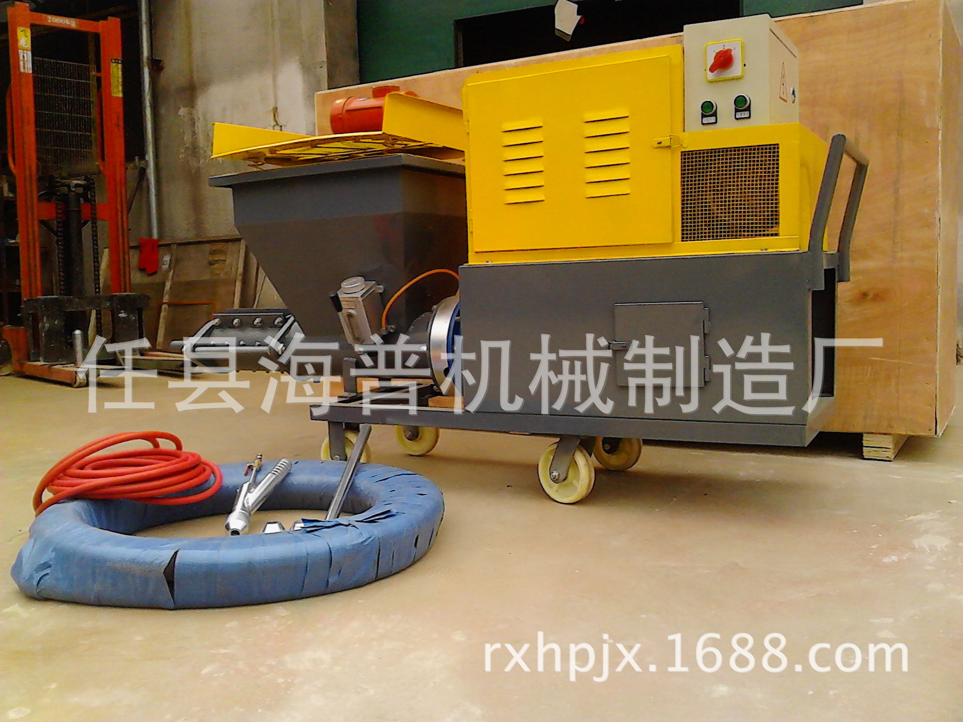 本机是一种螺杆式高压砂浆喷涂机,工艺先进。操作及维护简单,无需特殊培训就可熟练操作。 海普砂浆喷涂机: 产品主要用于建筑内外墙体、水泥砂浆喷涂和外墙体保温材料砂浆喷涂、耐火材料喷涂。海普公司生产的砂浆喷涂机基本没有落地灰、省水、省料,可大降低成本,操作简单,无需搭脚手架,不用移动设备,不用修补搭茬,阴阳角、顶板均能自由喷涂,具有速度快,效率高,劳动强度低,一台喷涂机每小时可轻松喷涂150平方米面积。 人工粉墙和以前推出的粉墙机,主要缺点是砂浆和墙体的粘结度及砂浆的密度低,我公司推出的喷涂设备流量大,压力高,克服了上述缺陷,砂浆密度远远超过了国家规定的标准,避免了因质量、工期、工价等问题造成的麻烦。 一机多用,能喷涂砂浆、防水涂料、耐火材料,不受地区和环境条件及喷涂面形状的影响。 本机是一种电螺杆式高压砂浆喷涂机,工艺先进,操作及维护简单,无需特殊培训就可熟练操作。 与传统的手工粉墙、抹灰及以前市场推出的粉墙机性能相比,使用我厂生产的快速砂浆喷涂的以下几个优点: 1、基本没有落地灰,省水、省料,可降低成本的20%以上。 2、操作简单,不需搭手架,不用移动设备,不用修补搭茬,阴阳角、顶板、均能自由喷涂,缩短了工期,提高了进度,又节约了架体材料费用的支出。 3、速度快、效率高、劳动强度低,一台喷涂机每小时可轻松喷涂150m2,除去准备时间,每小时工作8小时计算,可喷涂1000m2以上,相当20个熟练工苦干一天的工作量。 4、投资小,收益大,若每天每台设备喷涂1000m2按市场均价4元/m2计算,除去工人工资约500元,其他费用为500元,每天每台设备可获利3000元,除去其他因素,一年收入50万以上,也在预料之中。 5、工程质量有保证,人工粉墙和以前推出的粉墙机,主要缺点是砂浆和墙体和粘结度及砂浆的密度低,我厂推出的喷涂设备流量大、压力高、(可达3mpa)克服了上述缺陷,砂浆密度远远超过了国家规定的标准,避免了因质量、工期、工价等问题造成的麻烦和损失。 6、一机多用,能喷涂砂浆、防火涂料,耐火材料,不受地区和环境条件及受喷面形状的影响。
