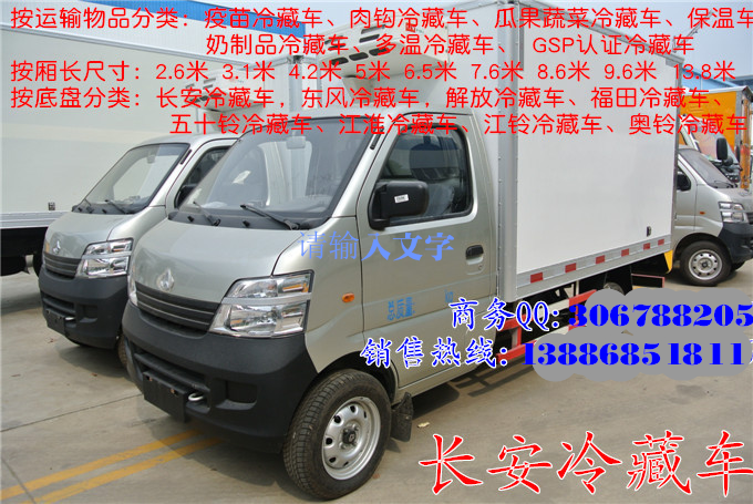 按底盘分类:长安冷藏车,东风冷藏车,解放冷藏车、福田冷藏车、金杯冷藏车