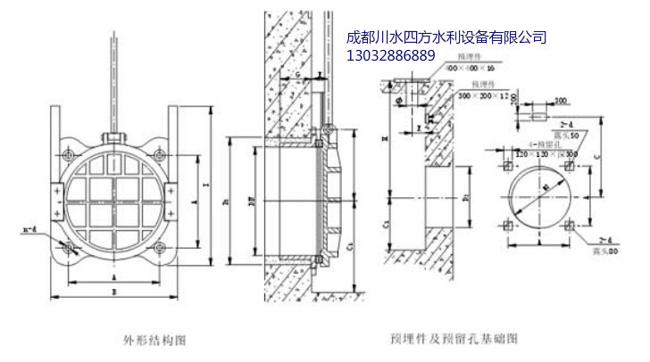 ZMY双向止水铸铁镶铜圆闸门外形连接尺寸