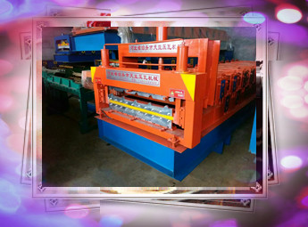 双层压瓦机前、后两排队的四角从大架到底轴上端的高度量一致,并能确保在发生连接件断裂故障的情况下,仍能保证机床的平安可靠性操作全自动920型彩钢压瓦机技术参数