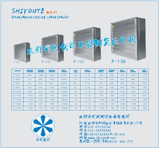 成都清风机电设备有限公司是专门从事工程安装、风机、通风设备设计、风管制作设计安装、制造的专业厂家,我厂生产主要产品有玻璃钢负压风机、镀锌负压风机、不锈钢风机、冷风机、湿濂、屋顶风机、厂房降温系统、厂房通风、降温风机、厂房排尘风机、油库通风、粮库通风、等系列一般用途和高温、防腐、防爆、耐磨等系列特殊用途风机,亦可根据用户需要设计制造所需参数及用途的风机。目前本厂生产的通风机产品在全国各地享有很高信誉及知名度,深受用户欢迎。