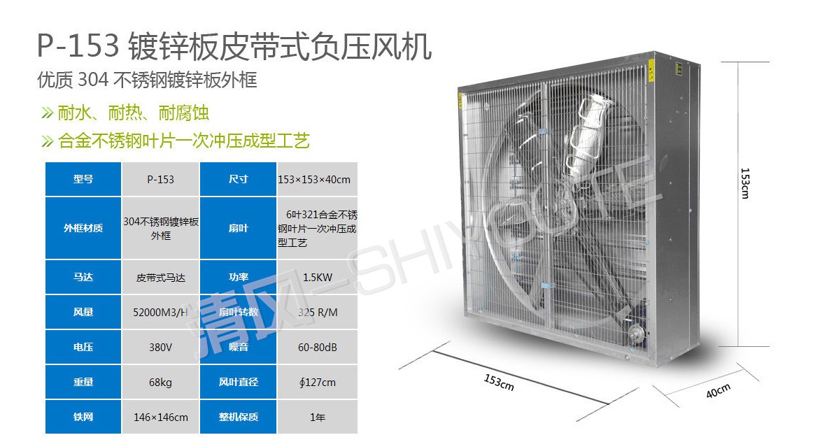 整机采用CAD/CAM设计,具有投资成本低,风量大,噪音低,耗能小,运行平稳,寿命长,效率高等特点,百叶窗自动起闭达到防尘,防水,美观大方;既可吹风,也可抽风,是现代化车间降温通风的最佳选择。环保、节能的负压风机将成通风降温设备市场主流。