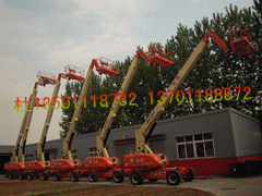 曲臂式高空作业车主要用于满足跨越其他安装在地面的障碍物的维修作业需要。用于直臂式作业平台不易达到的其他作业位置。动力来源为柴油发动机。平台高度从13.72米到45.72米。大部分型号可以全高度移动。良好的操作性能,和较窄的底盘宽度有利于设备进入狭小的工业通道和拥挤工作区域作业。