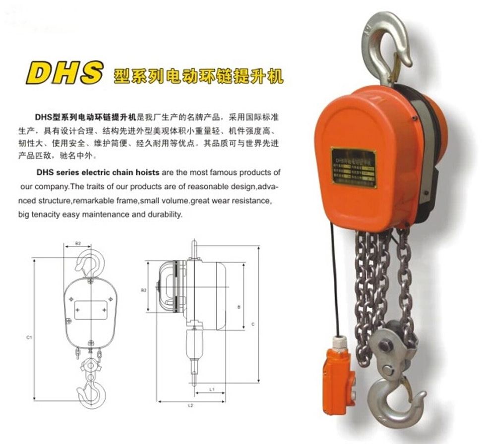 DHS环链电动葫芦:安全可靠的刹车装置,电流式电磁制动器结构有强劲的制动力,确保使用时的制动要求。