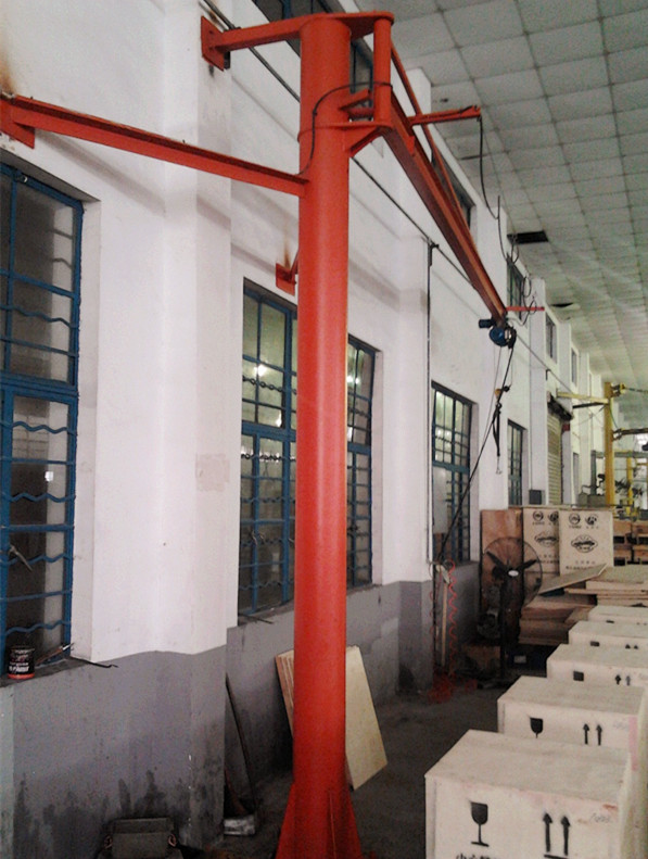 BZ型旋臂起重机是一种与CD1型或MD1型电动葫芦配套使用的轻小型起重机,主要由立柱、回转臂及电动葫芦组成,立柱下端通过地脚螺栓固定在混凝土基础上;电动葫芦在回转臂工字钢上作直线运行,并起吊重物,由人力驱动转臂回转。 本起重机结构简单,操作方便,转动灵活,作业范围大,适用于码头、仓库、车间等固定场所使用。