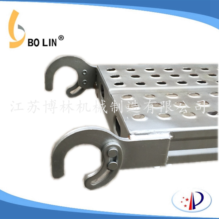 b、钢脚手架板独有的排凸孔设计,既可以减轻自重,同时又可以防滑、防变形。两侧封闭形设计增加了牢度和强度、防积沙,更使其外型美观大方、坚固耐用。