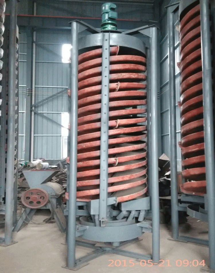 螺旋溜槽是1977年研制成的一种新型国内首创设备,其综合了螺旋选矿机、螺旋溜槽、摇床、离心选矿机的特点,是采矿、选矿的