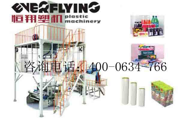 本机组采用新型高效分离型螺杆,三层共挤螺旋进料式复合模具,远红外线加热烘箱,旋转卷取等高新技术,处于国内领先水平。POF制品以聚烯烃(LLDPE、MLDPE、PP)为主要原料,经挤出成型膜坯,二次吹涨后双向拉伸成热收缩膜制品。其具有透明度高、韧性强,耐寒性、耐穿刺,抗拉强度大,收缩率高等优越的物理性能,广泛应用于食品、药品、饮料、医药、电器元件、生活用品、工业用品、农业用品等包装,具有广泛的市场前景。