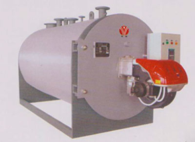 WNS型燃油(气)锅炉为卧式快装内燃三回程火管锅炉。采用偏置炉胆湿背式结构,高温烟气依次冲刷第二及第三回程烟管,然后由后烟室经烟囱排入大气。锅炉装有活动的前后烟箱盖,使锅炉检修方便。锅炉配置技术性能良好的工业燃烧器,采用了燃烧自动比例调节,给水自动调节,程序启停,全自动运行等先进技术,并具有高低水位报警和极低水位、超高汽压、熄火等自动保护功能。该型锅炉具有结构紧凑、安全可靠、操作简便、安装迅速、污染少、噪音低、效率高等特点。