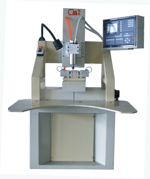 制锁设备之多功能雕铣牙花机,本机床适用于加工各种锁匙牙花,采用工业CNC数控系统制度,进口伺服电机,可根据锁匙中数。要求不同,灵活编写加工程序,可以完成锁匙的钻,雕,铣工序,使加工工序集中化,从提高加工精度,加工效率。