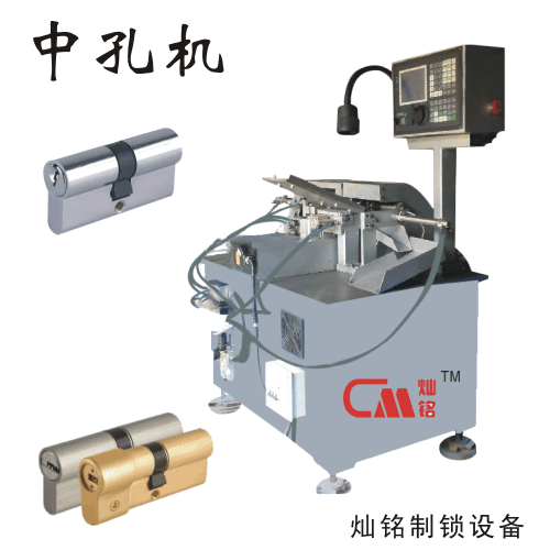 制锁设备之插芯锁钻螺丝孔机,本机床适用于加工插芯锁中间的螺丝孔,采用工业CNC数控系统制度,自动化程度高,钻孔道角,攻丝同时完成,具有高精度,操作简单方便等优点