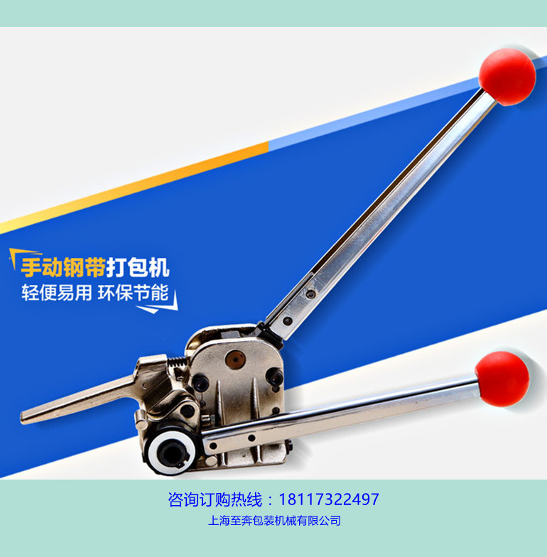 手持即可操作,集拉紧,咬合,切带于一体。该款手动免扣钢带打包机适用于平面包装,例如栈板、箱体和其他各种类似的包装形式。普通规格和高拉力规格的钢带均可使用。可在任何场合高效工作。由于GD35手动钢带打包机是采用免扣连接,不需要另外使用钢扣。免扣连接的平均抗拉强度约为钢带抗拉强度的80%,十分可靠。此外,还可以节约大约10%的整体包装成本。