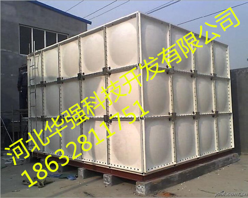 SMC组合式玻璃钢水箱是目前国际上采用的新型水箱。由整体优质的SMC水箱板拼装而成。其特点是采用食品级树脂,因此水质好,清洁无污染;具有强度高,重量轻,耐腐蚀,外型美观,使用寿命长,保养管理方便等特点。 我公司生产的玻璃钢水箱是国家建筑材料工业局和建设部推荐的产品,完全符合国家建筑工业局标准JC658.1—1997的技术性能要求。该水箱经国家有关部门检测,水箱符合GB/T17219-98《生活饮用水输配水设备及防护材料的安全性评价规范》要求,玻璃钢水箱水质符合国家《生活饮用水标准》(GB5749-85)。玻璃钢水箱广泛适用于工矿、企事业单位、住宅、宾馆、饭店等建筑,作为生活饮用水、中水处理、消防用水及其他用水储水设施。 玻璃钢水箱是由SMC模压板块、密封材料、金属结构件及配管系统现场组装而成。给设计和施工带来极大方便。一般水箱按标准设计,特殊水箱需要专门设计。可根据用户需要组装0.125-1500立方米的水箱。若原有水箱需要更换,不需要改造房屋,适应性很强。专门研制的定型产品密封带,该密封带无毒、耐水、弹性大、永久变型小,紧固密封。水箱整体强度高,无渗漏,无变形,保养、检修方便。 我公司生产的玻璃钢水箱板使用玻璃纤维增强材料,采用高温、高压工艺模压而成。板块尺寸分别为1000×1000、1000×500和500×500三种标准板块,板厚度5mm、6mm、8mm、10mm、12mm、14mm、16mm、20mm、22mm。
