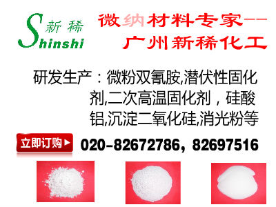 水溶性固化剂——供应广东价位合理的环氧树脂潜伏性固化剂广州市新稀冶金化工有限公司是一家生产型化工企业,从事环氧树脂潜伏性固化剂系列产品研发生产与经营为一体的有限责任公司。广州新稀化工一贯倡导“艰苦奋斗、开拓创新,诚实守信、追求卓越”的企业精神,以优、廉、新的环氧树脂潜伏性固化剂和优质售#后#服务的优势,不断拓宽了精细化工品供应市场的发展空间,赢得了广大需求群体的欢迎。联系电话020-82672786 广州新稀化工是一家营业额可达每年1亿元左右的生产型化工型企业,主营环氧树脂潜伏性固化剂,产品主要呈粉末状,其用途广泛,可用于作为环氧固体胶粘剂、单组分环氧树脂胶粘剂。广州新稀化工主营的环氧树脂潜伏性固化剂主要是以厂家直销的方式销售给需求群体的,采用陆运;公路运输;快递送货上门的方式进行产品运送。环氧树脂潜伏性固化剂是一款形态为粉末状的化工产品,当您购买时,请注意:储存场所保持阴凉、干燥、无火源、热源 环保微粉化双氰胺,订购环氧树脂固化剂,倾销环氧树脂固化剂 我们专注,所以我们专业。 包装标准:25公斤/桶 环氧树脂潜伏性固化剂品牌:新稀 有效物质含量:99.8% 生产地址:广州市新塘镇南安梅基工业区六栋 生产厂家:广州市新稀冶金化工有限公司 付款方式:银行转账;当面交易;货到付款;快递代收;银行转帐或在线支付 售#后#维#修#地区:全国 售#后#服务:免费产品信息咨询样品试用 销售地区:全国 产品别名:潜伏性固化剂、微粉化双氰胺、超细活性双氰胺 适用行业:广泛应用于胶粘剂行业:环氧固体胶粘剂、单组分环氧树脂胶粘剂如汽车胶,电磁胶,电子胶(贴片胶,邦定胶)等;复合材料碳纤预进料:如:风力发电机叶轮、螺旋桨、鱼杆、高尔夫球杆、网球杆以及运动器材方面;粉末涂料行业:高档纯环氧粉末、环氧/聚酯粉末、防腐粉末、美术型粉末、皱纹和细状砂纹粉末、浇铸料;用于湿法制造环氧层压板、热固化油墨、碳纤维等复合材料的关键原料。 价格:商议 广州新稀化工主要采用陆运;公路运输;快递送货上门的方式在双方协商的时间内将您购买的环氧树脂潜伏性固化剂发送到您的手中,请您留意下物流详情。在收到环氧树脂潜伏性固化剂后请仔细检查,如有出现任何质量问题,请联系我们,我们将为您提供满意的售#后#处理,联系电话13318829056,联系人杨雪英 以下文章详解,提供微粉化双氰胺,选购环氧树脂固化剂,供销微粉化双氰胺的相关信息,请保存收藏。 感谢老客户一直以来对广州新稀化工的大力支持,也希望能为更多的新客户提供优质的产品和服务。我们将竭诚为广大的新老客户提供最好的环氧树脂潜伏性固化剂,在精细化工品供应打下自己的专属品牌。公司地址位于广州市新塘镇南安梅基工业区6栋,广州市新稀冶金化工有限公司期待您的来访。 供应详情请登录广州市新稀冶金化工有限公司网站:了解更多批销环氧树脂固化剂,最好的潜伏性固化剂,抢手的环氧树脂固化剂,热销微粉化双氰胺,置办潜伏性固化剂www.shinshi.cn信息