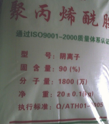 聚丙烯酰胺,是絮凝剂中的一种,英文代号(PAM)。主要分类:阴离子聚丙烯酰胺(APAM),阳离子聚丙烯酰胺(CPAM),非离子聚丙烯酰胺(NPAM)。它被广泛应用在石油开采、水处理、纺织、印染、造纸、选矿、洗煤、医药、制糖、养殖、建材、农业等行业。被誉为“百业助剂”、同时又有“万能产品”之称。