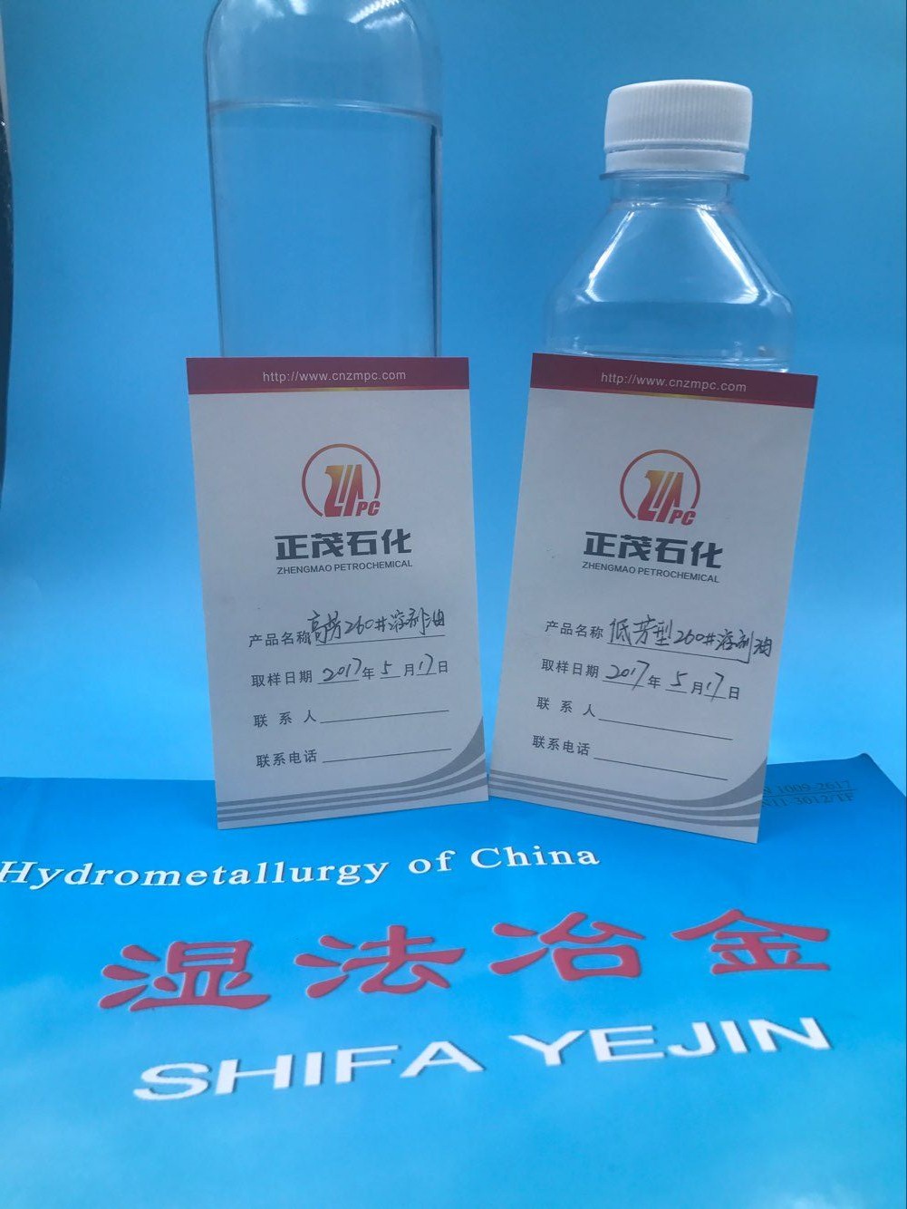 (也称260#矿山溶剂油),是特种煤油型溶剂油,由煤油磺化而成,外观为无色或浅黄色液体。 详细介绍: 大量【稀有金属萃取液】 1、【磺化煤油】又称260号溶剂油(也称260#矿山溶剂油),是特种煤油型溶剂油,由煤油磺化而成,外观为无色或浅黄色液体。 2、【产品特点】蒸发速度均匀而缓慢,芳香烃含量较少,毒性很小,安全性较高。无臭味,质纯洁,蒸发无残留物,受热不易氧化。 3、【产品用途】 (1)稀土金属元素萃取剂(矿山提炼稀有金属之用)。 (2)用来清洗精密金属制品,如铝箔和各种铝合金制品,提高光亮度。 (3)作为冷却清洗剂用于电火花切割,可使工件表面保持光洁。 (4)滴注分解对金属工件进行渗碳,可提高金属加工件表面的硬度和耐磨性。 (5)作纺织印刷染助剂。 (6)可作燃料用于矿灯照明。 (7)可作为香料萃取剂以及调制化妆用品。