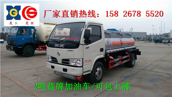 2、东风多利卡2吨蓝牌加油车(底盘带有前盘式制动,限速,ABS,标配欧标罐口、海底阀,选装下装口、油气回收、防溢流探杆(即欧标全套)