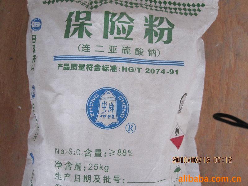 保险粉为白色砂状结晶或淡黄色粉末化学用品,无气味或略带二氧化硫气味 。熔点300℃(分解) ,引燃温度 250 ℃,不溶于乙醇,溶于氢氧化钠溶液,遇水发生强烈反应并燃烧。