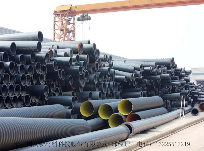 洛阳国润埋地排水用聚乙烯双壁波纹管是以高密度聚乙烯为原料生产而成的具有与轴线垂直的中空环状波纹且内壁平滑,同时又具有优异环刚度和良好强度与韧性的塑料管材。产品重量轻、耐冲击性强、不易破损,是混凝土管、铸铁管的理想换代产品。