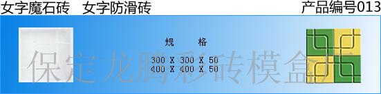 我厂模具部主要产品:彩砖塑料模盒,广场砖模盒,水泥砖塑料模盒,便道砖塑料模盒,光亮砖塑料模盒,井盖塑料模具,雨水蓖子塑料模具,路侧石塑料橡胶模具,路沿石砖塑料橡胶模具,护坡砖塑料模具,植草砖塑料模具,树围塑料模具,花池塑料橡胶模具,彩瓦塑料模具,水泥瓦塑料模具,三通模具,侧排水模具。颜料球磨车间主要产品;彩色面料,彩砖面层料,彩砖耐晒绿,彩砖光亮剂,彩砖氧化铁红,铁黄,铁绿,水磨石专用绿色浆,液压砖面料。