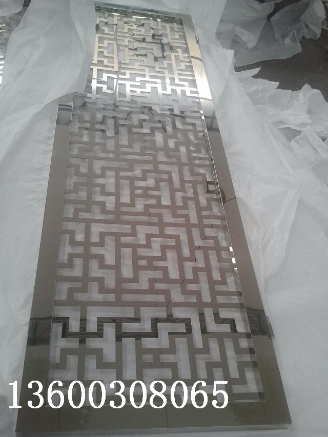 不锈钢屏风分不锈钢板激光镂空切割屏风和不锈钢管焊接屏风.不锈钢板镂空屏风工艺是在不锈钢板上直接激光切割镂空花纹或花格,表面平整,无毛刺.不锈钢管焊接屏风有两种工艺,一种是见缝工艺,一种是无缝工艺.见缝工艺是在屏风的正面能看到切割45度角,拼在一起的,无缝工艺就是从整个外观看,看不到焊点.