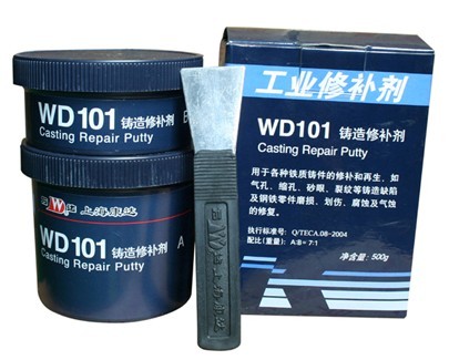WD118铸工胶 适用于铁质、钢质铸件砂眼、气孔或裂纹等铸造缺陷的填补。操作方便,经济实用。