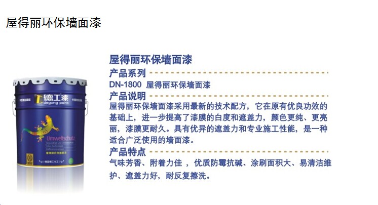 佛山市德工化工有限公司秉承了德国德工化工集团核心的价值观、领先的技术和丰富经验,将环境保护放在第一位,强调绿色生态涂料研发的功能性和实用性,实施以质量及品牌为核心的“ISO9001质量保证体系”及“中国驰名商标”认证,强化体系营销,努力营造具有特殊代表性的技术服务系统,推出的产品严格按照德国标准全自动生产,由德国工程师进行品质管理。