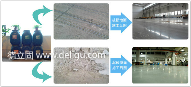 德立固水泥密封固化剂施工的地坪能够使混凝土地面硬度提高至花岗岩9级硬度,超强耐磨耐压,1次施工,拖车、叉车长期碾压30年不起尘砂。