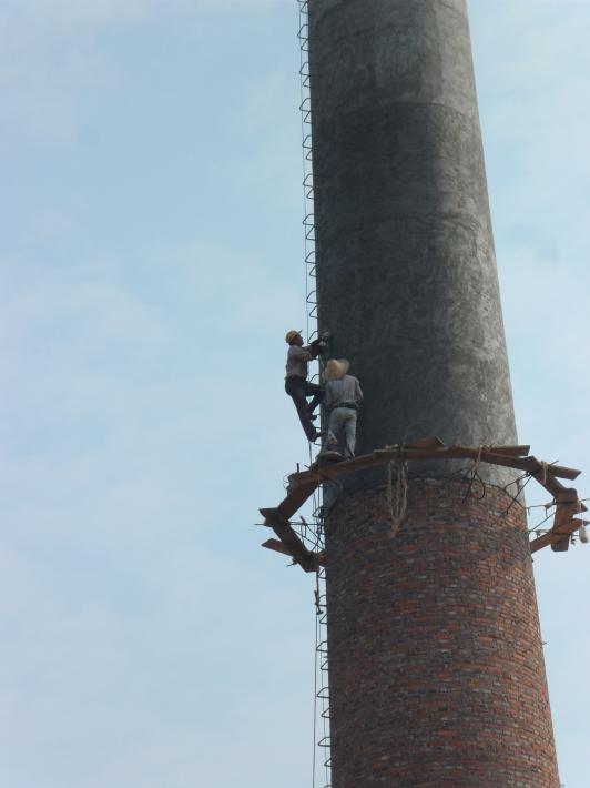 二、烟囱维修:各种烟囱粉刷、烟囱检测、检修、烟囱维修加固、烟囱裂缝处理加固、烟囱加包箍、烟囱加防震竖筋、烟囱拆除加高(扩大缩小烟囱口径)、烟囱内壁防腐维修(烟囱内壁耐火砖修补更换),烟囱顶口加固维修、烟囱内壁清灰、烟囱内外壁水泥粉刷、抹灰各种高构砼建筑物碳纤维加固、水泥柱、水泥梁、水泥现浇板碳纤维布加固、砼烟囱碳纤维布加固、烟囱裂缝加箍加固。