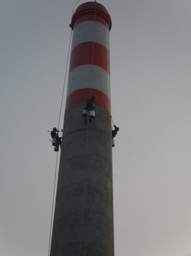 三、烟囱防腐:各种烟囱美化、烟囱防腐、烟囱内壁脱硫、烟囱刷航标、烟囱刷色环、烟囱外壁刷涂料、铁塔、电视塔架、钢结构、钢烟囱、港口吊机、龙门吊、烟囱爬梯护网、烟囱安装平台、凉水塔等高空金属铁件油漆防腐。