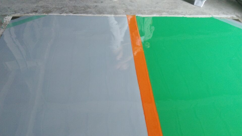 6、面漆施工:将调配好的面漆用镘刀或滚筒均匀涂布,完工后整体地面光亮洁净,颜色均一,无空鼓;