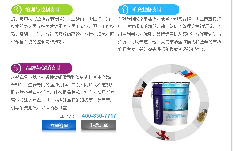 6、加盟运营所必需的整套豪祺漆市场运营资料、证书、推广手册;
