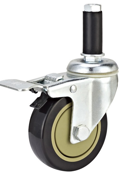 脚轮是个统称,包括活动脚轮和固定脚轮。活动脚轮也就我们所说的万向轮,它的结构允许360度旋转;固定脚轮也叫定向脚轮,它没有旋转结构,不能转动。通常是两种脚轮一般都是搭配用的,比如手推车的结构是前边两个定向轮,后边靠近推动扶手的是两个万向轮。