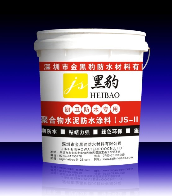黑豹防水厂家直销,防水材料,建筑装饰,地下室、卫生间专用防水材料-防水材料价格及生产厂家,防水涂料,黑豹防水材料,深圳防水材料厂家,JS-II型防水涂料是黑豹JS系统中较为经济的产品系列,能够承受一定的荷载和变形,能抵抗非结构的裂缝,强力的弹性适用于由潮湿膨胀和干燥收缩而引起的差异运动的柔韧性和高强度。产品设计用在厨房、浴卫间、地下室、路基、内外墙,各种建筑物等混凝土基面,用滚筒刷子涂刷直接施工或加入一定比例的普通水泥批档施工。该系列产品广泛使用在各种建筑防水工程中并得到广大客户认可和好评。