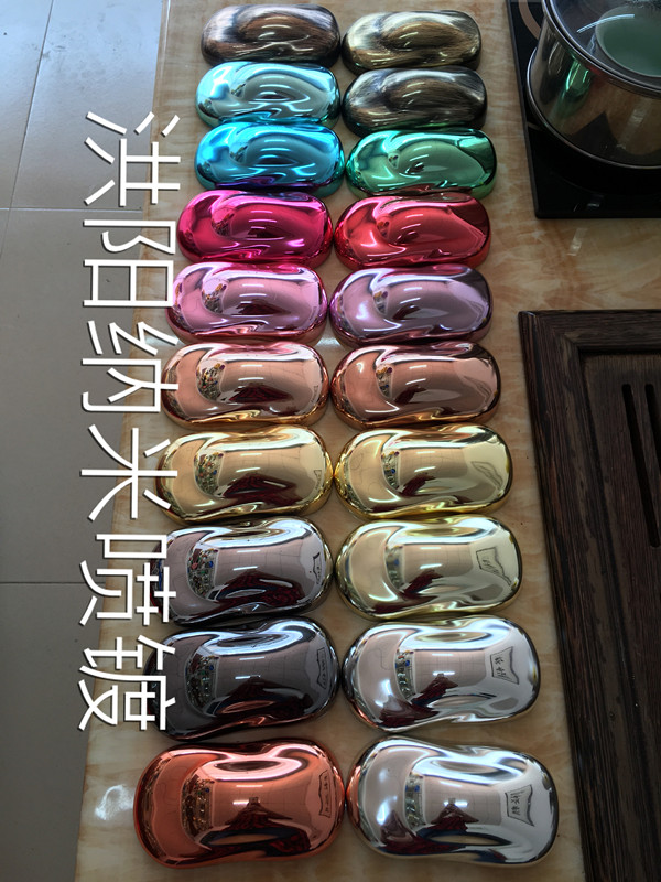 纳米喷镀工艺可应用在金属、树脂、pp+ps碳素树脂、塑料、玻璃、陶瓷、塑木、卫浴产品、窗帘杆、佛像、圣诞用品、工艺品、蜡烛及木制品等各种材料上喷涂。也可用于汽车、电器、电脑手机、饰品、高档家具、亚克力、磷镁、钙塑、水泥、等高级表面喷镀 。纳米喷镀的工艺流程是:前期处理(有油除油、有锈除锈)→喷镀底漆→烘干→喷镀设备喷反应层→喷镀面漆→烘干→成品包装 。洪阳纳米喷镀是目前世界上最前沿的高科技喷镀技术,它是采用专用设备和先进的材料,应用化学原理通过直接喷涂的方式使被涂物体表面呈现金、银、铬及各种彩色(红黄紫绿蓝)等各种镜面高光效果。