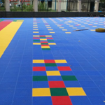 2、以左上角为起点,沿着右下角方向依次拼接地板。铺装时注意按照设计要求搭接不同颜色的地板,同时随时检查安装过的地板的角度,避免角度不对影响整个地板的拼接。