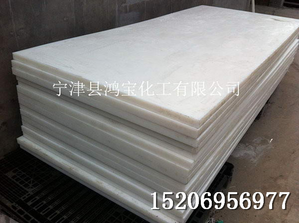 UHMW-PE板材是我公司借鉴国外先进技术基础上独立开发的高科技产品。被国家经委列为国家级技术创新型项目。该板材具有重量轻、抗冲击、耐磨、耐腐蚀、摩察系数小、吸能、耐老化、阻燃、抗静电等优良性能。使用UHMW-PE板材铺衬电厂、煤矿的原煤仓;水泥厂、钢铁厂、铝厂的矿石及其他物料仓;粮食、饲料、制药行业的粮食,码头料仓等,可防止粘料,加快下料速度,杜绝堵塞事故,节省空气炮的投资和费用。铺衬散装船舱可避免粉料粘附船舱并减轻装卸机械对船壁的损耗!