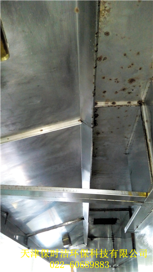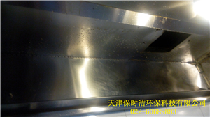 一、烟罩烟道清洗后95%以上可以见到烟道原有的内壁铁皮色,不残留块状油污;