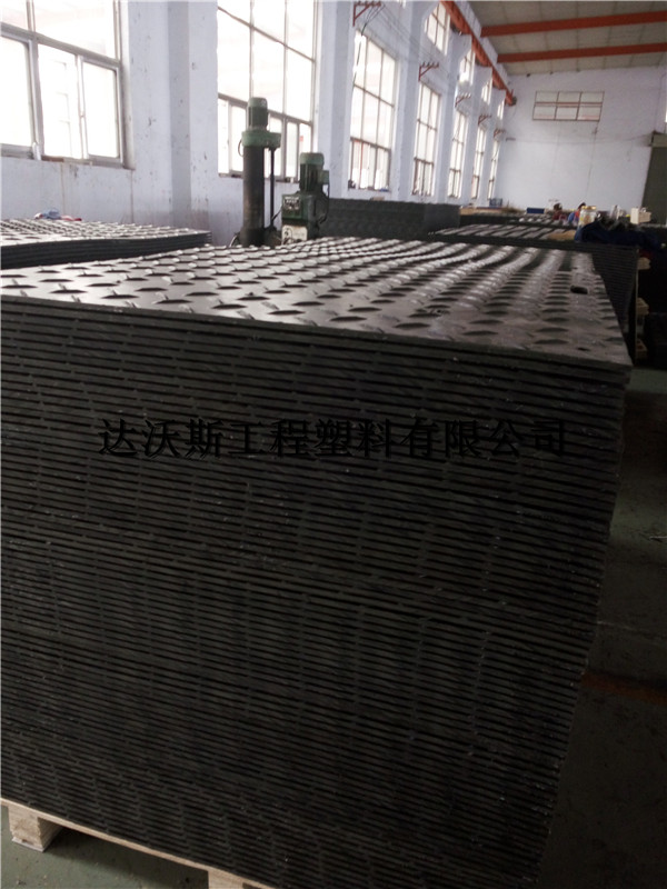 抗压防滑临时铺路板 高分子路垫防滑聚乙烯铺路板选用超高分子量聚乙烯板道面垫板, 可用于地震等紧急情况下快速建设临时道路或用于快速修补遭大范围破坏的道路、机场,适用于救灾抢险、军事应急等.野外现场车载试验表明,本复合材料道面垫板可适用于淤泥等各种恶劣场地土条件;同时建立了道面垫板在复杂车载环境下的精细化有限元模型,有限元解与理论解及实测值具有较好的可比性.抢建抢修路面垫板是指用于地震、雪灾等紧急情况发生时快速建设临时道路的一种轻质高强的复合材料垫板.复合材料道面垫板可事先按一定模数制备,紧急情况发生时,即可在淤泥、沼泽、软黏土等恶劣的场地条件下将其快速拼装,形成可供通车的便道,将物资与人员快速运送转移,聚乙烯复合材料具有较高的比强度、比刚度、良好的疲劳性能、耐化学腐蚀性能等特点。