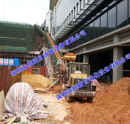 1.在搅拌站中长距离土方输送机_沙子带式输送机_矿石胶带输送机,物料输送设备主要是骨料,碎石,砂子和水泥的输送设备,胶带输送机是混凝土搅拌装置中应用最多的一种骨料输送设备,在单阶式搅拌楼中它是唯一的骨料输送设备当它倾斜布置时对平面胶带倾角为18度左右,对瓦楞面胶带倾角为26度左右。可以将骨料送到几直米的料仓内;