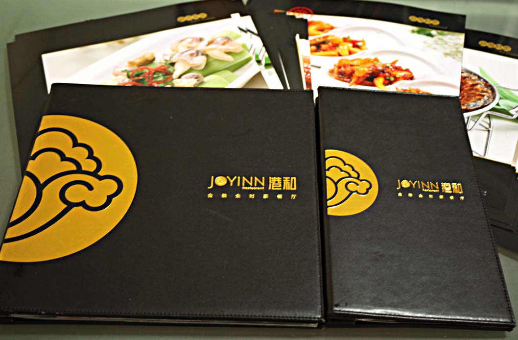 此菜谱采用诺鼎菜谱独创的“手札式”菜谱制作的装订形式,拿在手中,颇具玩味。但形状极其修长,全部用来呈现菜单文字的话,稍显狭长,顶部开出一片地方融进素材后,便很好地起到了分割整个版面的长度的目的,使其修长却不感觉瘦弱。字体采用极具汉字特点的宋三体,英文作为时代的气息的反映,选用了比较现代的字体,最终效果达到了让客户和我们都很满意。