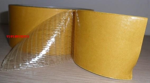 玻璃纤维网胶带,纤维胶带内有增强的玻璃纤维或聚酯纤维。 有玻璃纤维线及玻璃纤维网两种。胶带具有极强的断裂强度,优异的耐