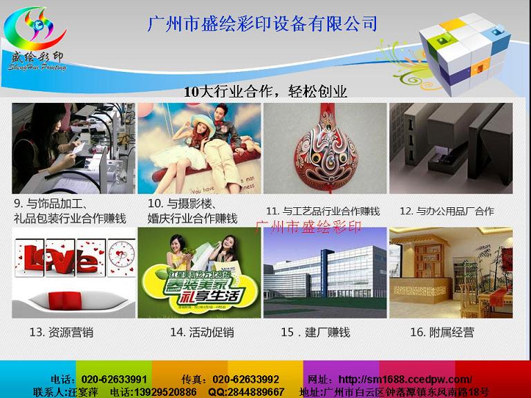 6.木质屏风印花机不受物体材质的影响: 可以用丰富的色彩在原材料 (金属、塑料、石材,皮革,木材,金属,玻璃、水晶、亚克力、铜版纸) 成品和半成品 ( 小部件整理箱,钱包,皮包,商标,牌匾等 ) 等软、硬质物体表面上进行图像的真彩图文印刷。由于喷印时喷头与介质面是非接触性,不会因热量和压力发生变形等现象,因此也可以在容易变形柔软的原材料(如皮革及纺织品)上印刷。