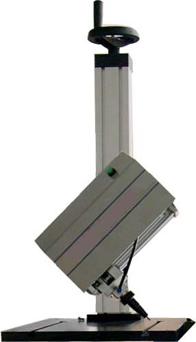 由于打标机的机头部分可以进行0~90度的旋转,所以可以使打标针处在倾斜状态下打印工件的斜面。配合数控旋转夹具的旋转,可以打印锥体的工件。