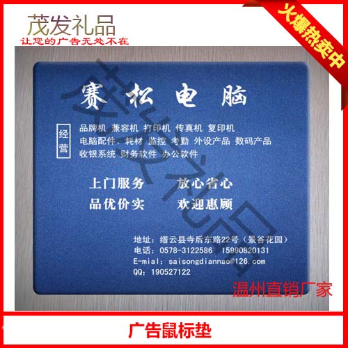 稳定、长期地合作关系。苍南茂发包装制品有限公司专业为各事企单位、银行、房地产、证券公司、广告公司生产个性、时尚、优惠的广告宣传鼠标垫,我厂以时尚的设计风格、先进的机器设备、精细的制作工艺、快速的生产能力为企业导向,并引进现代化电脑管理,物流配套措施为各地区的客户服务。茂发鼠标垫,广告鼠标垫,鼠标垫定做