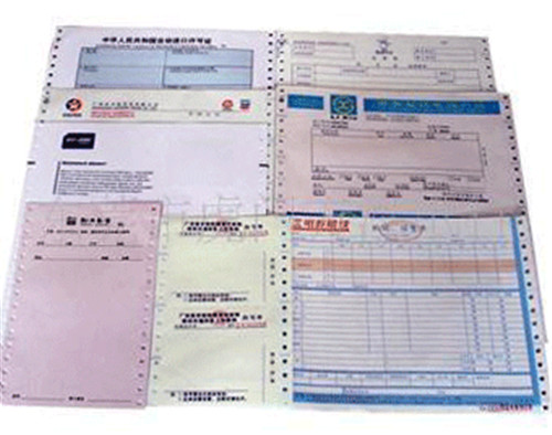 送货联单、订货联单、批发业联单、零售业联单、酒店业联单、美容业联单、眼镜业联单),无须垫放复写纸,可直接书写复印的一种纸张,一般单色印刷,每联纸张颜色可以改变,印刷打码可实现电脑票据流水号打印。