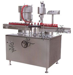 该机种设计新颖独到、机械扭矩控制智能化,并且操作与调节十分便利,操作人员只需将瓶盖置于瓶口上,瓶子在向前运行的过程中,瓶盖被三组搓盖轮自动拧紧。既可用于单机生产,更是连线生产的理想机型。可方便地升级为完全的自动旋盖机ASP,我们有提升式、斜盘式、震荡式等落盖系统,可根据实际需要选配。
