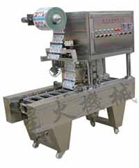 该机适用于各种塑料杯,碗,用塑料复合膜或铝塑复合膜进行热封和切边,如果冻,牛奶,豆腐,和其他食品或类似产品的长方盒、正方盒封口包装,经包装后的产品外形美观,立体感强.本机设计新颖,结构简单合理,操作方便,包装效果较为理想,外部材料采用不锈钢和铝合金,符合卫生要求,特别适合中小企业选择使用.